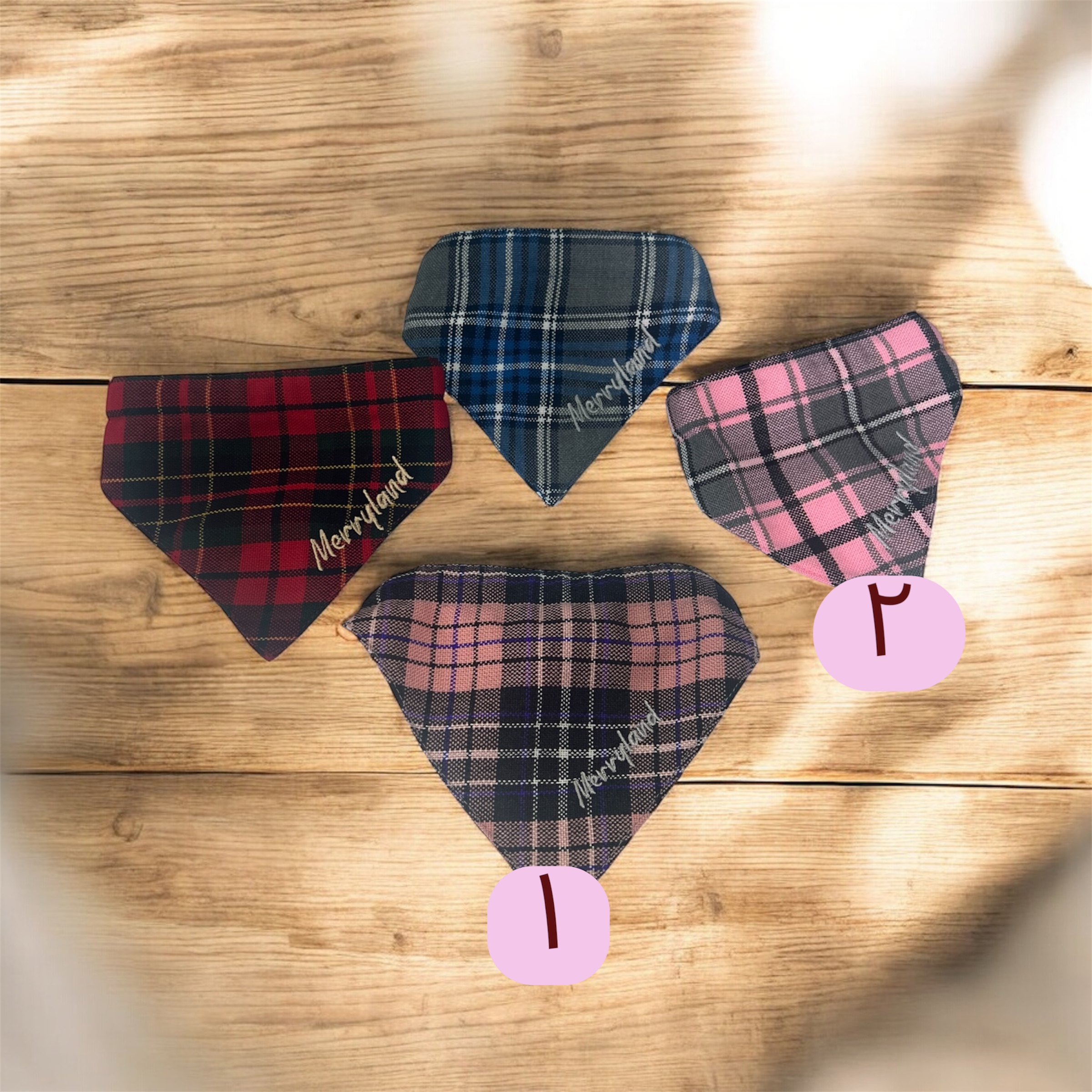 دستمال گردنی طرح چهارخانه پارچه موهر مخصوص سگ نژاد کوچک