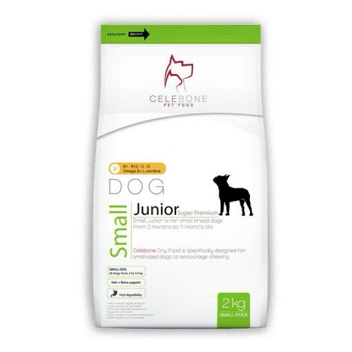غذای خشک سگ سلبن (Celebone) مدل Small Junior، به طور خاص برای تولهسگهای نژاد کوچک طراحی و تولید شده است.