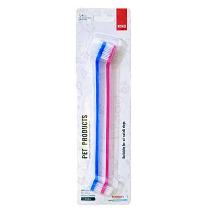 مسواک براش دار دو طرفه سگ و گربه از جنس پلاستیک مرغوب و براش های نسبتا زبر است که براحتی سطح دندانها را تمیز میکند.دارای یک سر درشت مناسب برای مسواک زدن دندانهای درشت عقبی و سر کوچکتر برای مسواک زدن دندانهای ریز جلویی است.