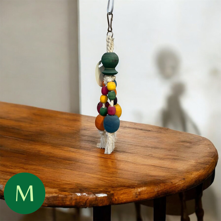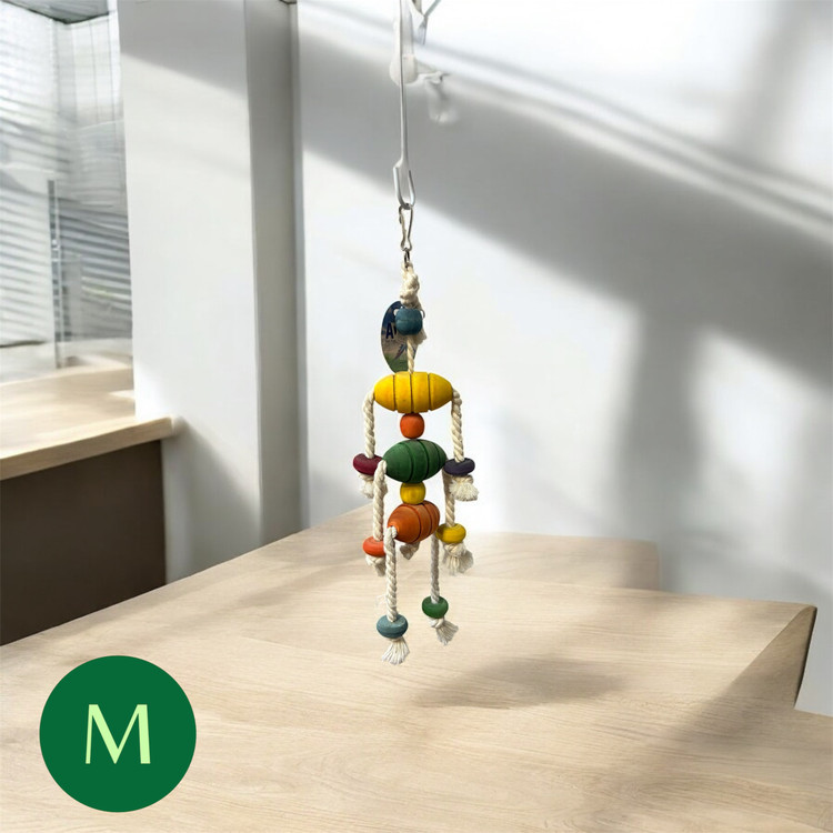 اسباببازی چوب و کنف برای طوطیها از ترکیب چوب طبیعی و طنابهای کنفی ساخته میشود تا محیطی امن و جذاب برای بازی و فعالیت پرنده فراهم کند. این اسباببازیها به تقویت منقار، تحریک ذهنی و فیزیکی طوطی کمک میکنند و از بروز رفتارهای مخرب مانند پرکنی یا بیحوصلگی جلوگیری میکنند.