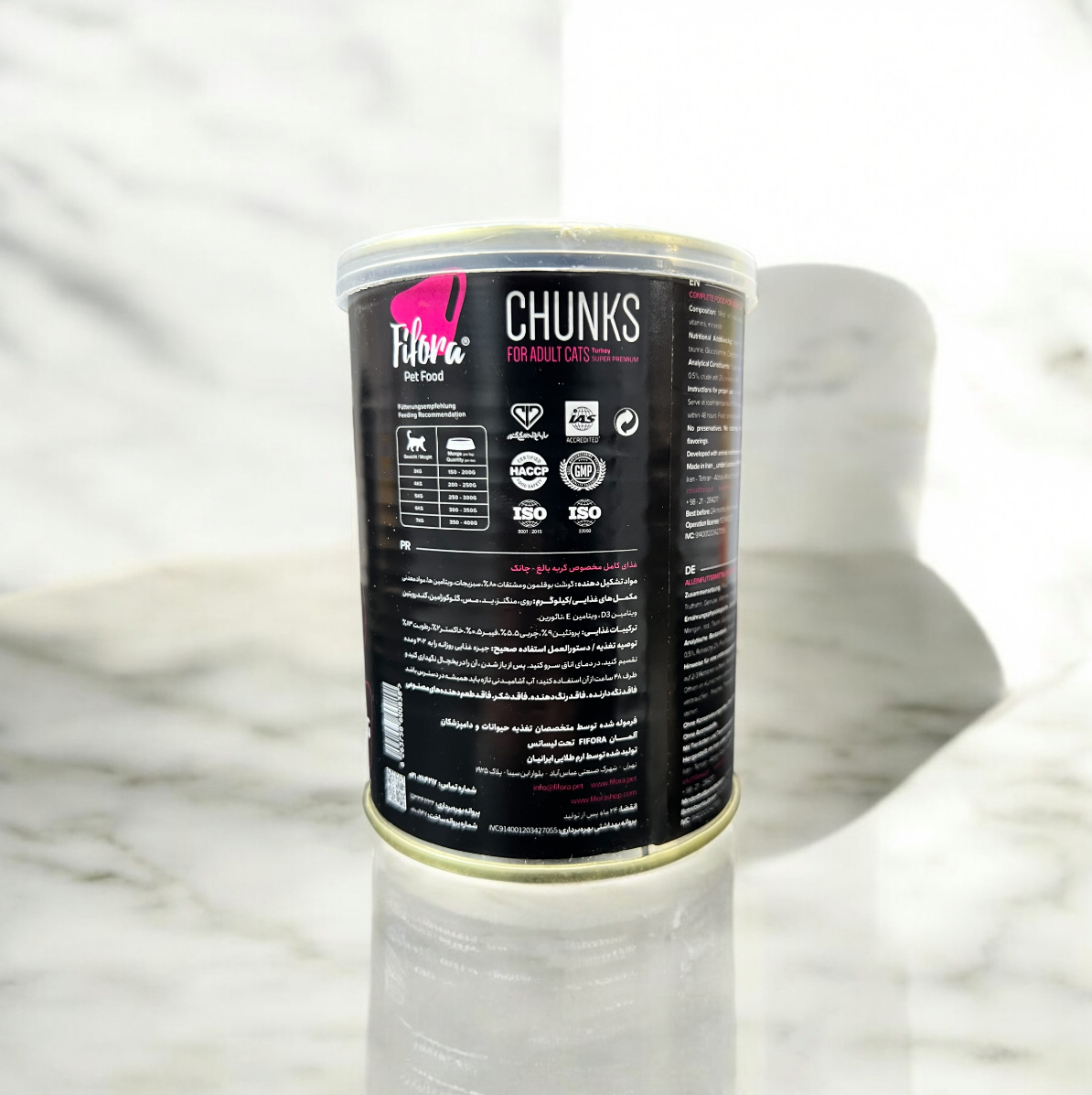 کنسرو چانک طعم بوقلمون Fifora غذایی کامل، خوشطعم و مغذی برای گربههای بالغ تمام نژادهاست.