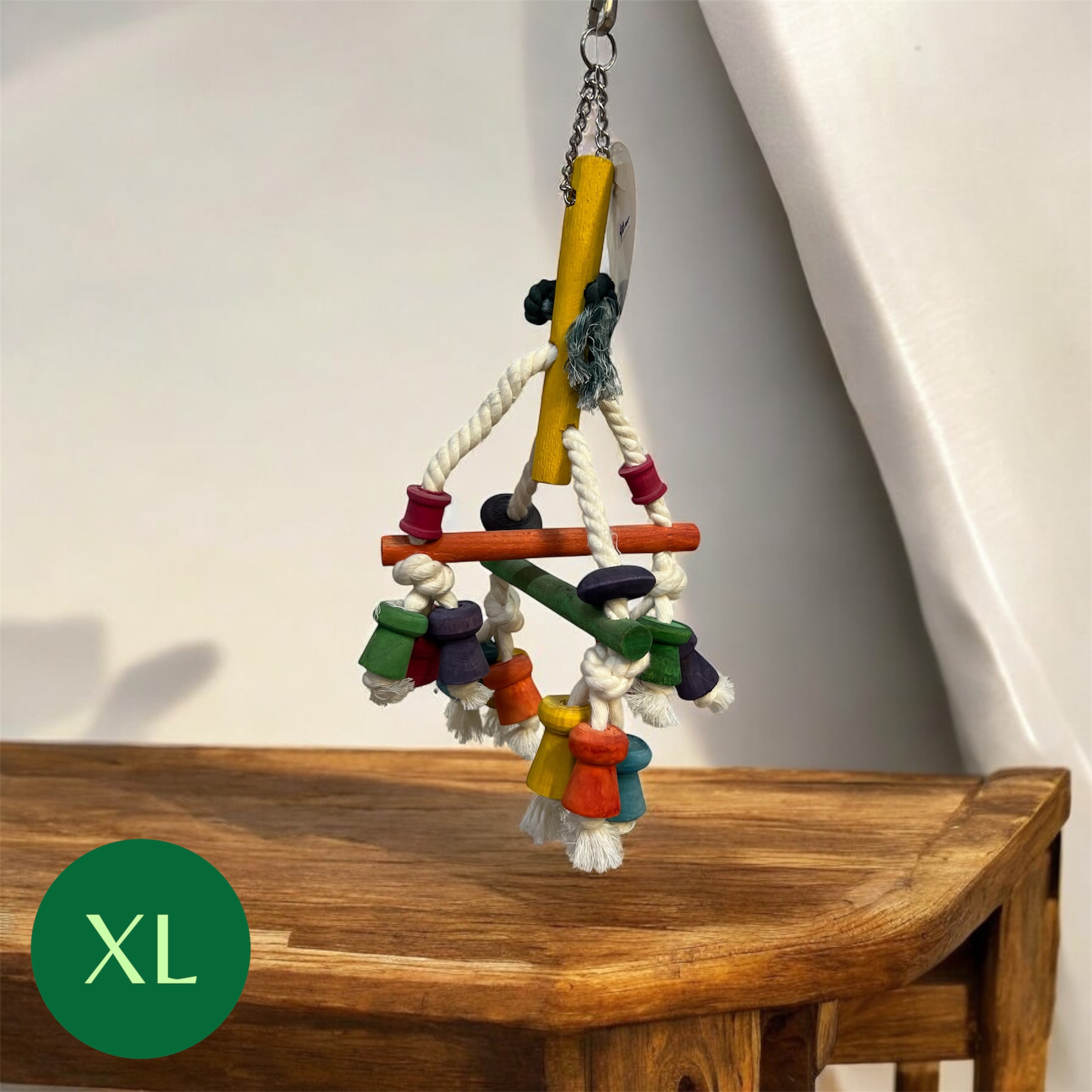 اسباب بازی چوبی آویزی مخصوص طوطی سانان بزرگ جثه