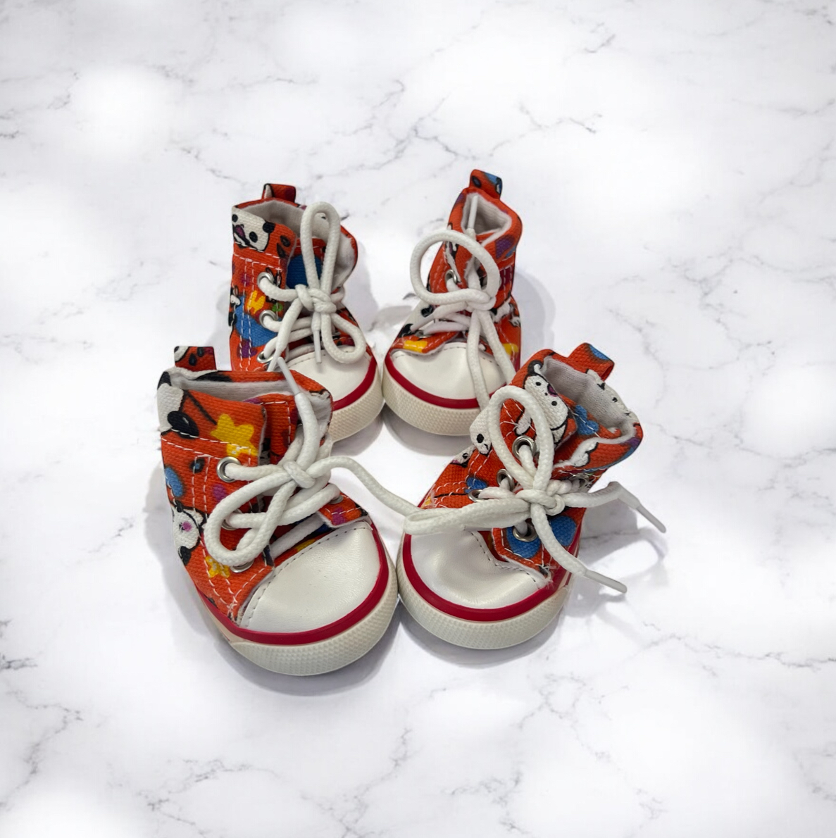 جنس کتونی قرمز: ترکیب چرم مصنوعی براق با پارچه تنفسی و کفی پلاستیک بادوام