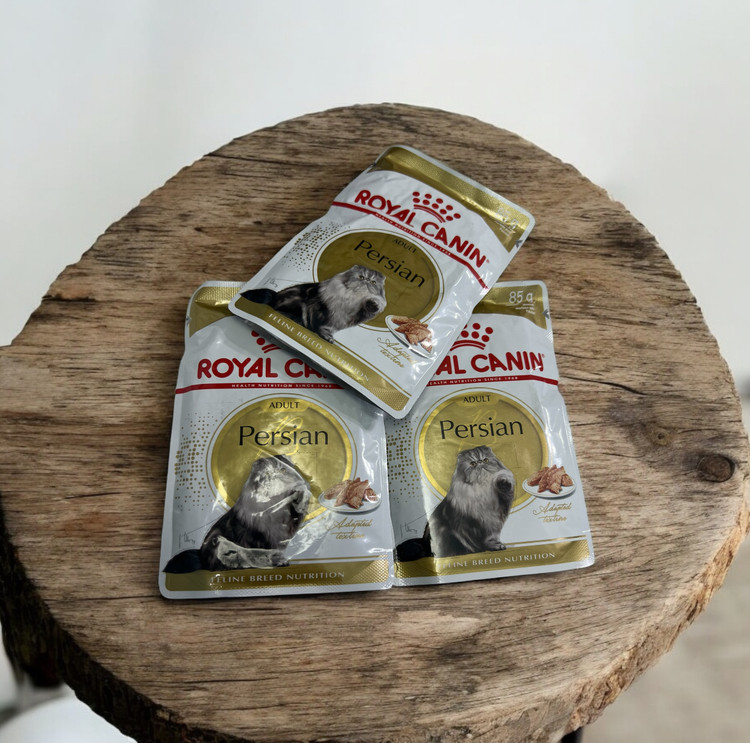 رویال کنین برای گربههای پرشین، غذای مرطوب (پوچ) خاصی تولید کرده که به صورت تکههای کوچک در سس (gravy) است. این پوچ به طور ویژه برای برطرف کردن نیازهای تغذیهای و ویژگیهای فیزیکی این نژاد طراحی شده.