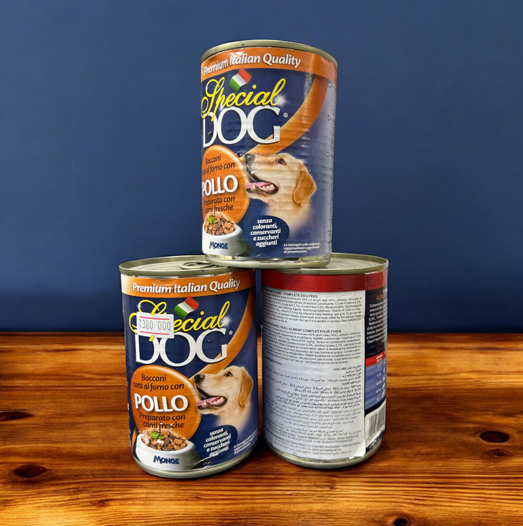 کنسرو ۴۰۰ گرمی سگ برند اسپیشل محصول کشور ایتالیا بوده و در طعم مرغ و گوشت گاو موجود میباشد. تکه های گوشت شناور در سس رطوبت ۸۰٪ را فراهم کرده است .