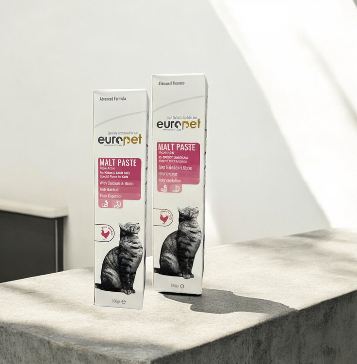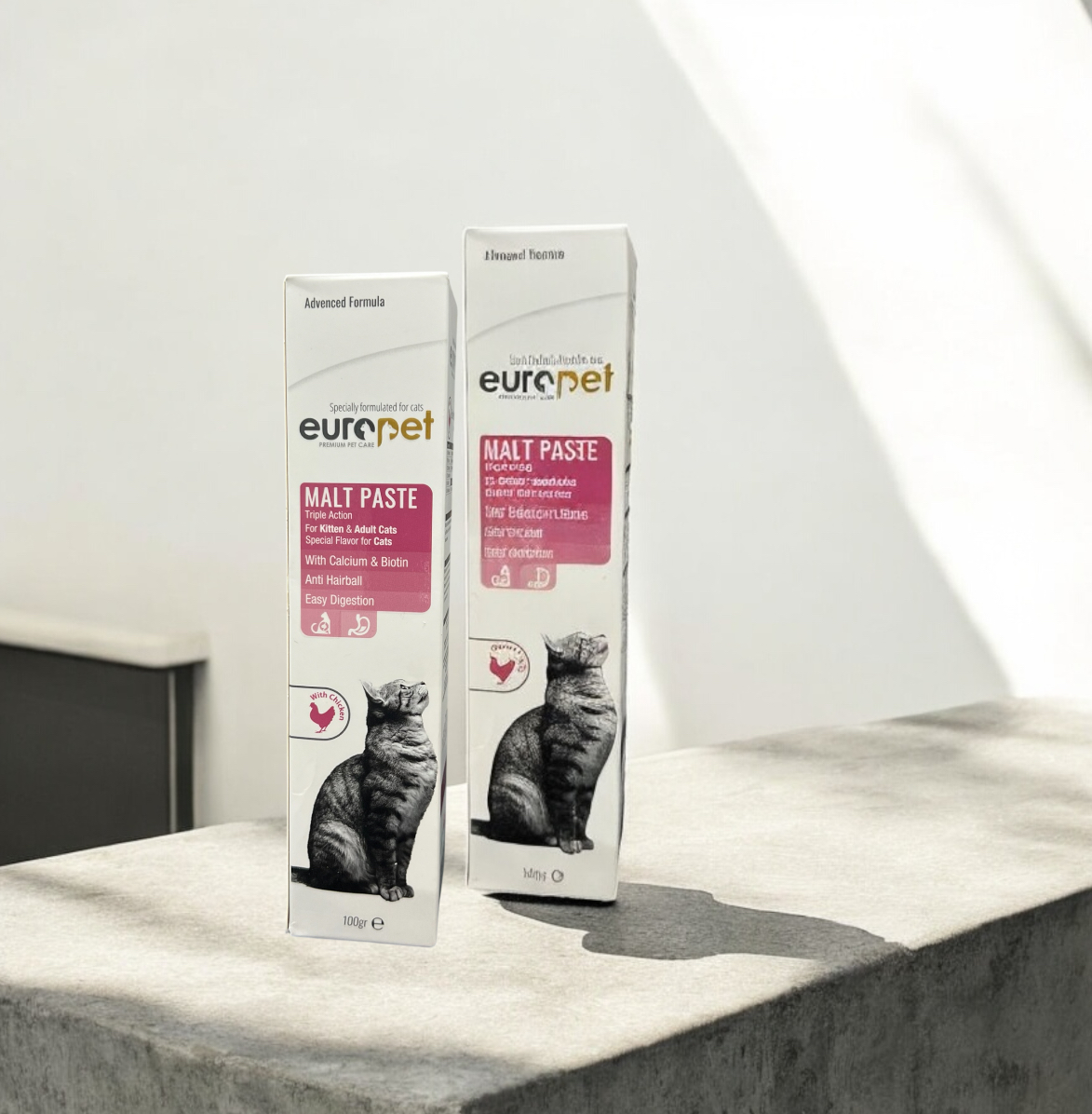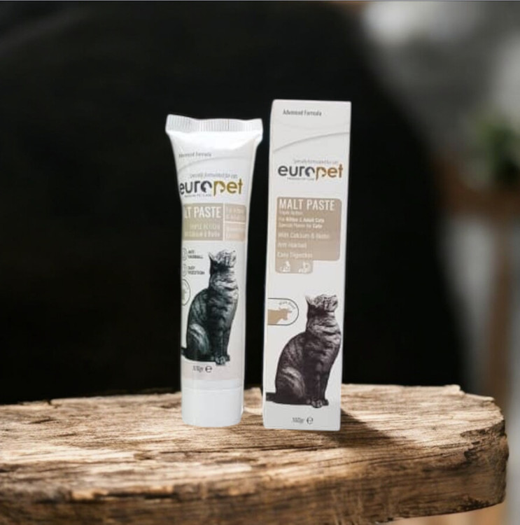 خمیر مالت گربه یوروپت (Europet Malt Paste) یک مکمل غذایی برای گربههاست که به طور خاص برای کمک به هضم و پیشگیری از مشکلات ناشی از گلولههای مویی (Hairballs) طراحی شده است. گربهها در حین لیسیدن و تمیز کردن بدن خود، مقدار زیادی مو میبلعند که این موها میتوانند در معده و روده آنها تجمع پیدا کرده و باعث مشکلات گوارشی مثل استفراغ، یبوست یا حتی انسداد روده شوند.